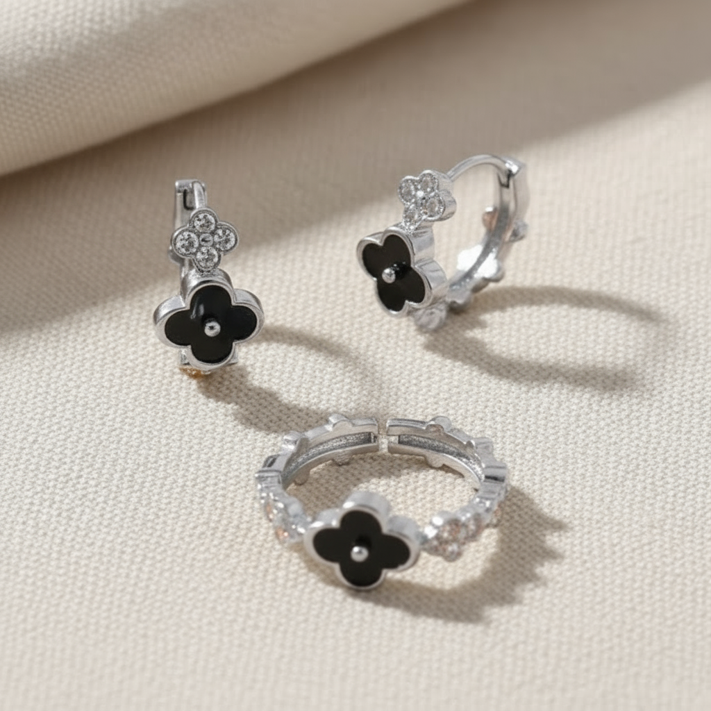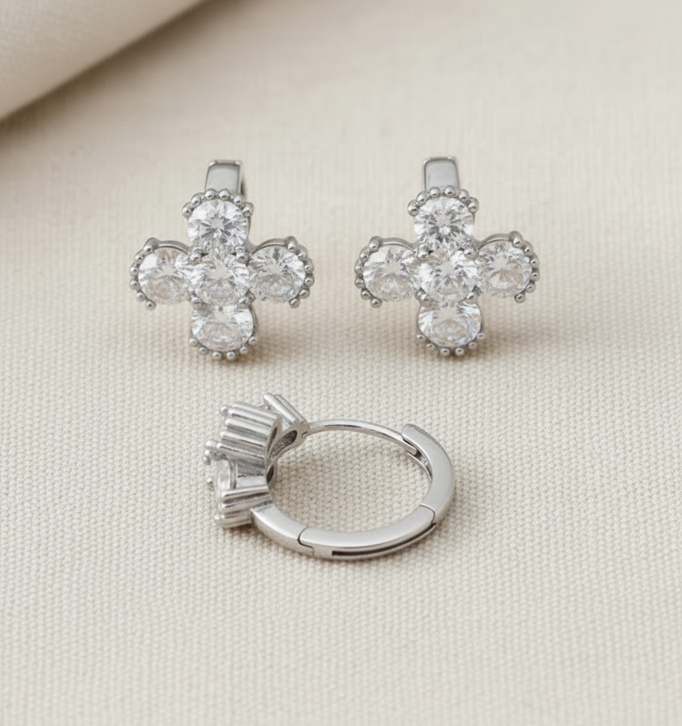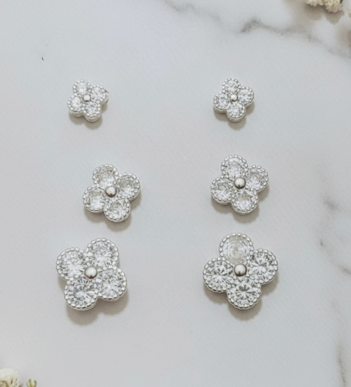 - Conjunto de três tamanhos em formato de flor com zircônias, perfeito para múltiplos furos ou composição delicada.