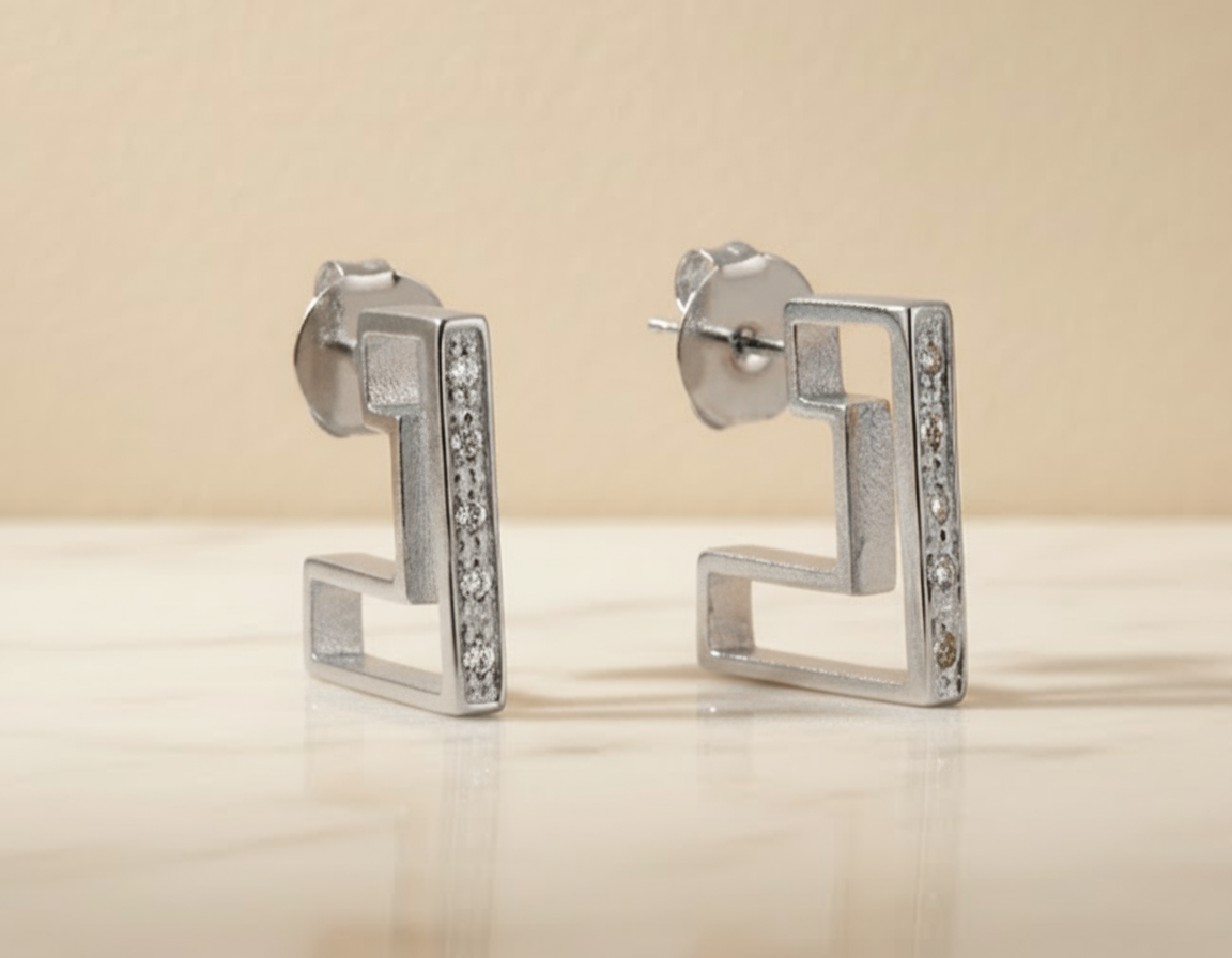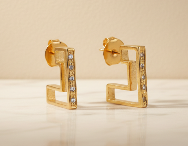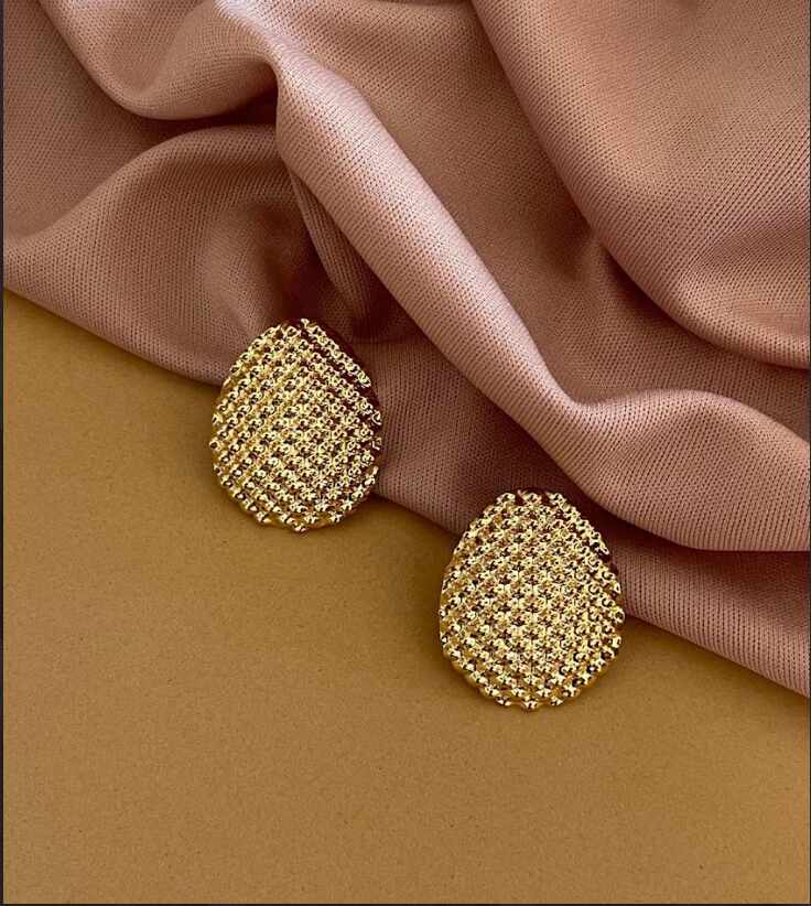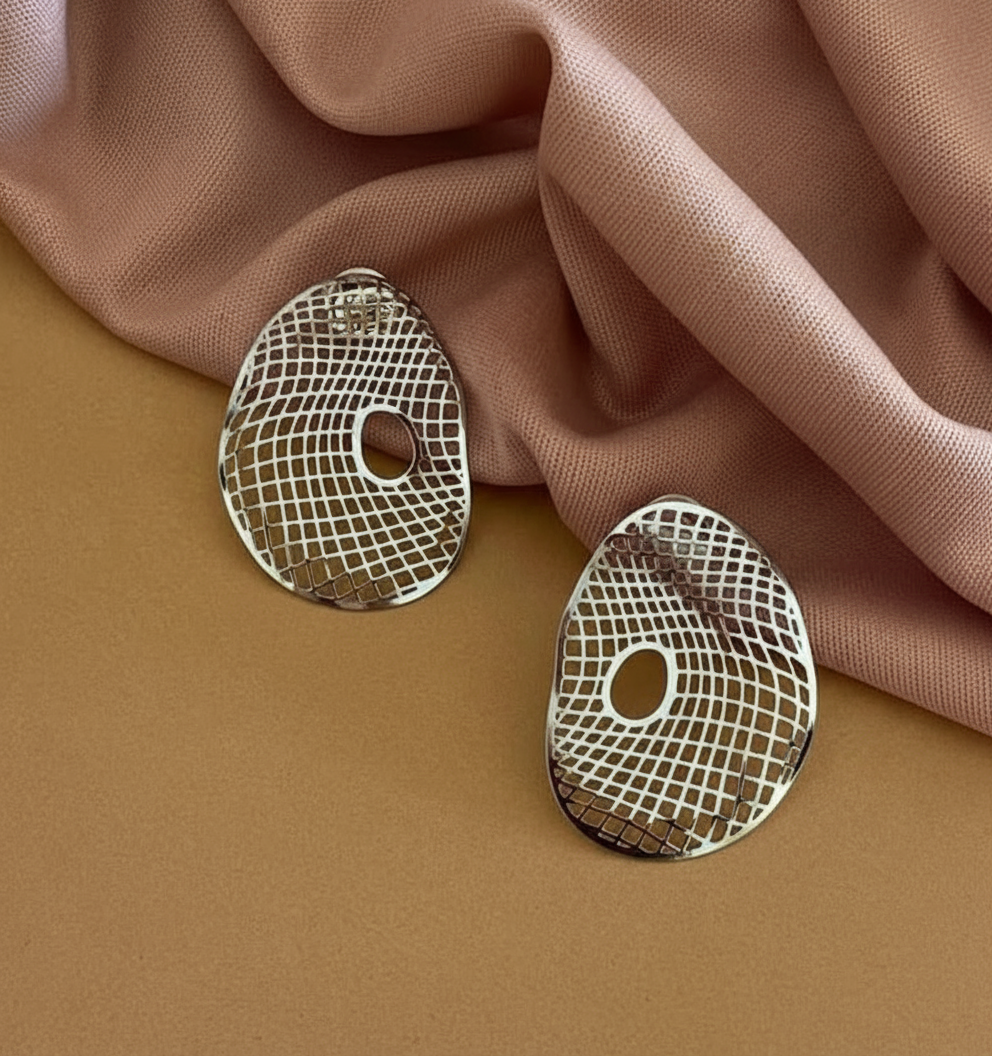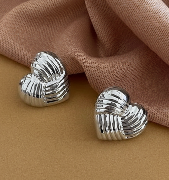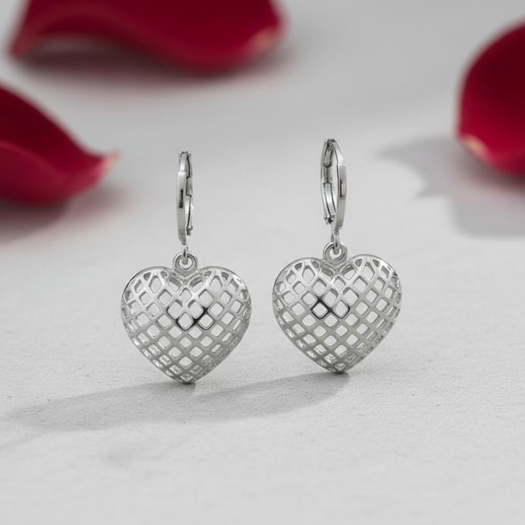 - Brincos em coração com padronagem vazada, criando brilho texturizado e movimento suave a cada balanço.