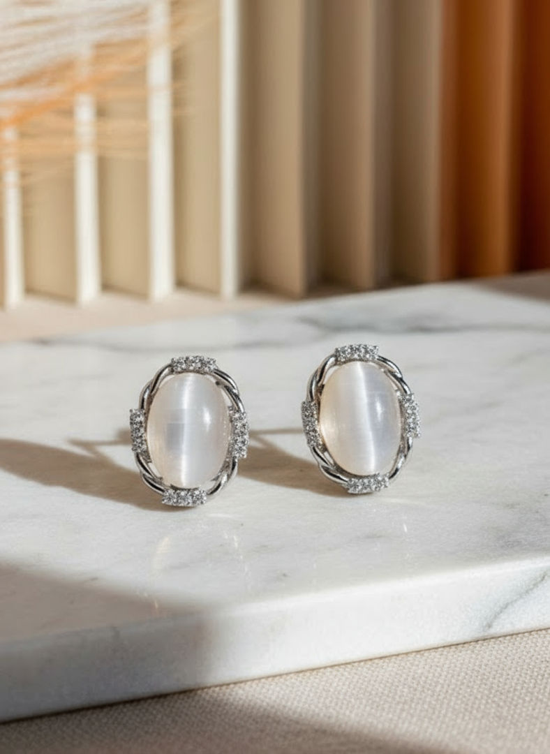 - Pedra central translúcida que capta a luz em reflexos sutis, emoldurada por contorno trançado e pontos de brilho, para um toque sofisticado.